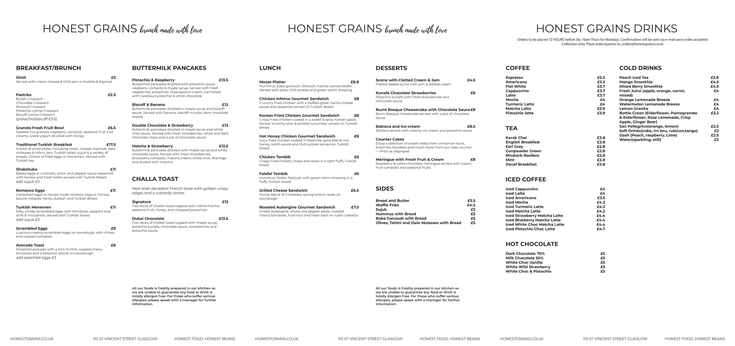 Each coffee cup is sourced, roasted, and brewed with care. We work with carefully selected local coffee roasters and ensure our coffee is fair trade and organic. From a quick espresso to a leisurely latte, every visit is infused with warmth and care. Nestled in the heart of Glasgow, Honest Grains isn’t just about coffee — it’s about creating moments of connection and joy to brighten your day.