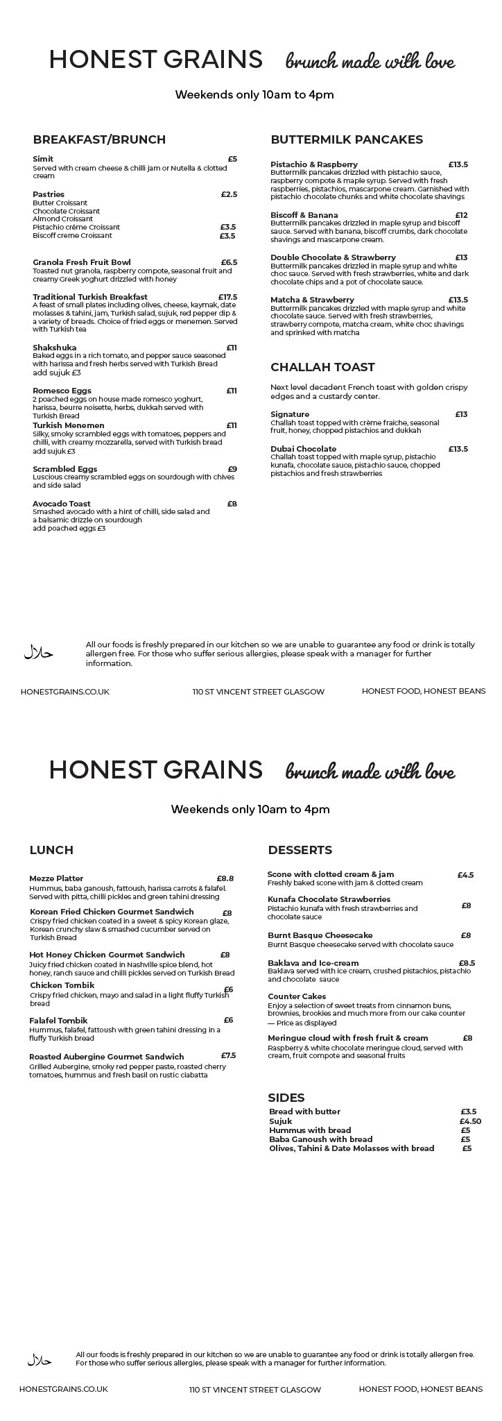 NOW SERVING BRUNCH AT HONEST GRAINS